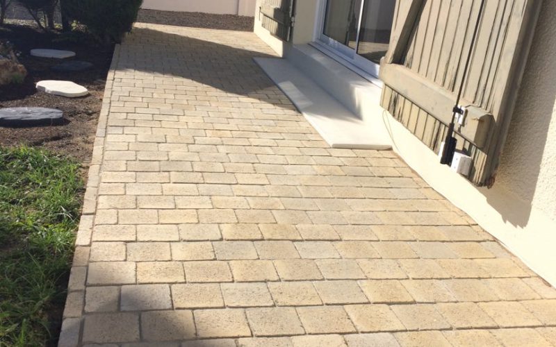 Nous avons créé une magnifique allée en pavées qui réussie à donner à ce jardin un coté à la fois contemporain et traditionnel.