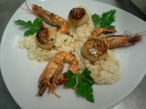 Pour les gourmands risotto de st Jacques et Gambas Posted on7 janvier 2018AuthorDan Services Risotto crémeux , St Jacques juste poêlées, Gambas rôtis,